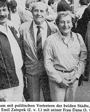 Als Ehrengäste dabei: Emil Zátopek und seine Frau Dana, 1952 ebenfalls Olympiasiegerin im Speerwurf. Ihr Ruhm war auch mehr als drei Jahrzehnten nach ihren sportlichen Erfolgen nicht verblasst. Ich lernte beide jedoch als umgängliche und bescheidene Menschen kennen. Sie stellten nicht sich in den Vordergrund, sondern die Idee, die sie unterstützten.